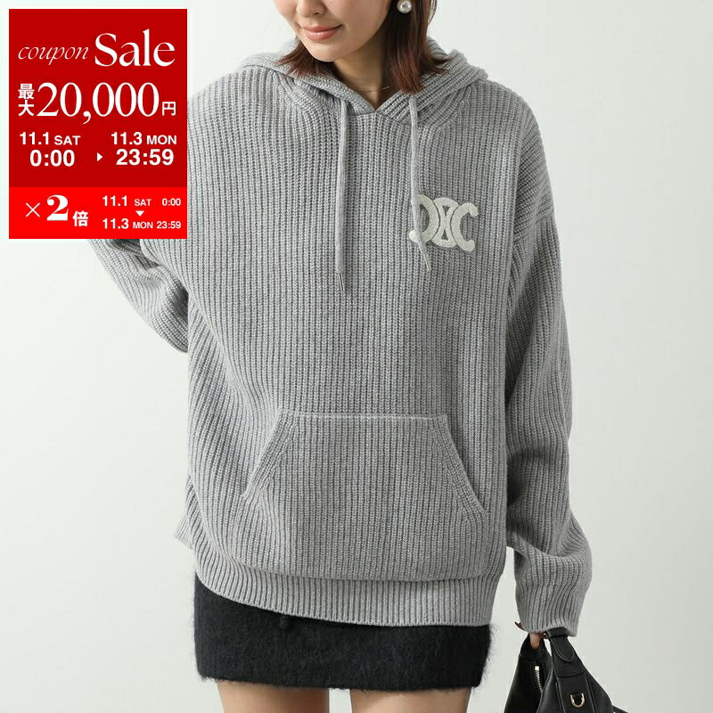 【11/1~11/3限定・最大2万円OFFクーポン配布中】CELINE セリーヌ ニットパーカー RY0FV0ZTQ.08GC レディース プルオーバー 長袖 トリオンフ リブ編み ウール セーター グレー