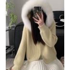 ニット セーター リブ編みファーフーディニットパーカー レディース