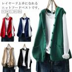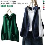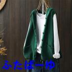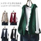 ノースリーブ ポケット付き フード付き レディース パーカー ニット レイヤード 前開き ゆったり ニットフードベスト お洒落 カーディガン ニットベ