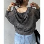 ニット セーター ショート丈シアーニットパーカー レディース
