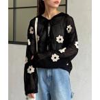 ニット セーター メッシュ花柄ジャガードパーカー レディース