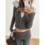 ニット セーター クロップドニットパーカー レディース