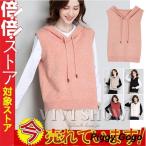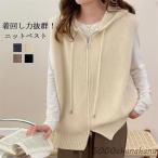 【先着50枚!13%OFFクーポン】ニットベスト レディース 前開き 秋冬 フード付き ベスト ポケット付き カーディガン 無地 ゆったり おしゃれ 重ね着 レイヤード トップス お洒落 可愛い ノースリーブ ニットパーカー ニット