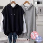 パーカー レディース ノースリーブ フード付き ベスト プルオーバー プルオーバーパーカー ゆったり 重ね着
