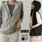 パーカー ベスト レディース ジレ スウェット ノースリーブ プルオーバー フード付き ゆったり 重ね着 おしゃれ カジュアル vivishow