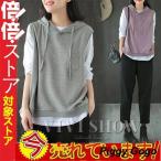 爆買 夏新作パーカー レディース ノースリーブ ベスト フード付き 重ね着 レイヤード風 春 秋 トレーナー フード付き パーカー 無袖 トップス 無地 シン