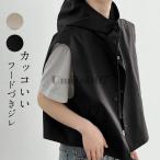 【10%OFFクーポン!配布中!】COCOMOMO ノースリーブジレジャケット フード付きベスト パーカー風ベスト レディース ノースリーブ ジャケット ジレ ショート フード アウター ライトアウター 羽織り ゆったり カジュアル ポ