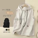 爆買 ベスト レディース ノースリーブ パーカー 春夏 パーカーベスト ジレベスト フード付き 前開き ジップパーカー カジュアル 綿麻風 ポケット付き