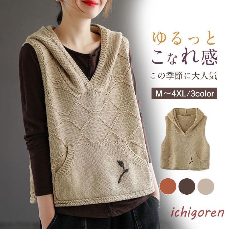 ベスト ジレ ニット×ダンボールパーカーベスト レディース