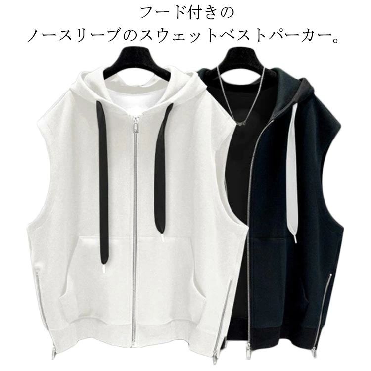 パーカー メンズ ノースリーブパーカー プルオーバー タンクトップ ビッグシルエット ベスト フード付き 夏