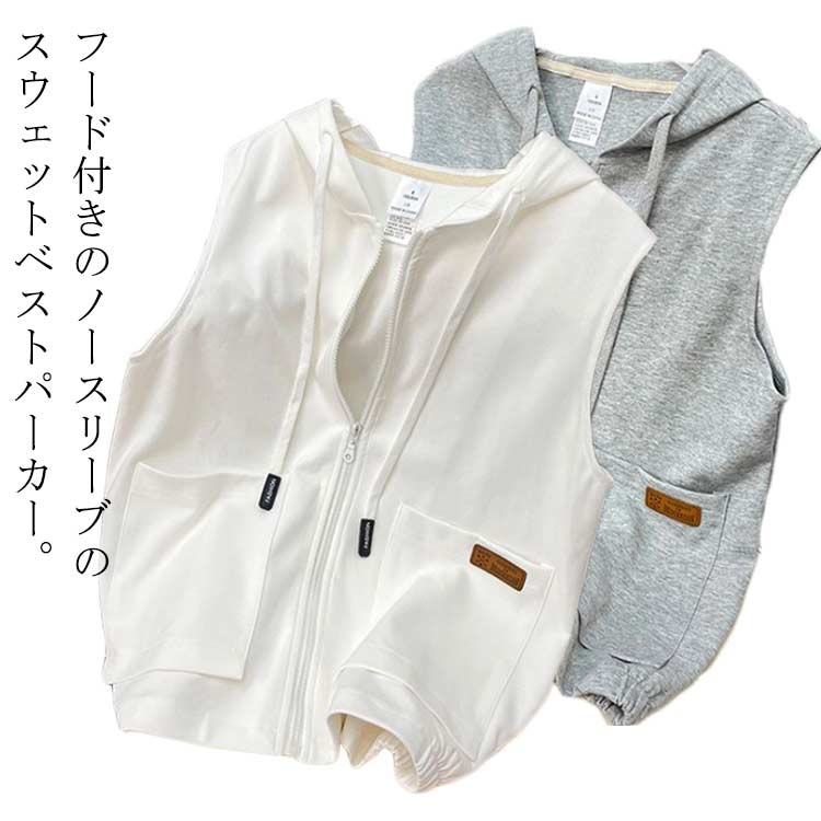 夏用 前開き パーカーベスト パーカー ジレ ベスト レディース フード付き パーカー トップス ノースリーブパーカー アウター ノースリーブ 羽織