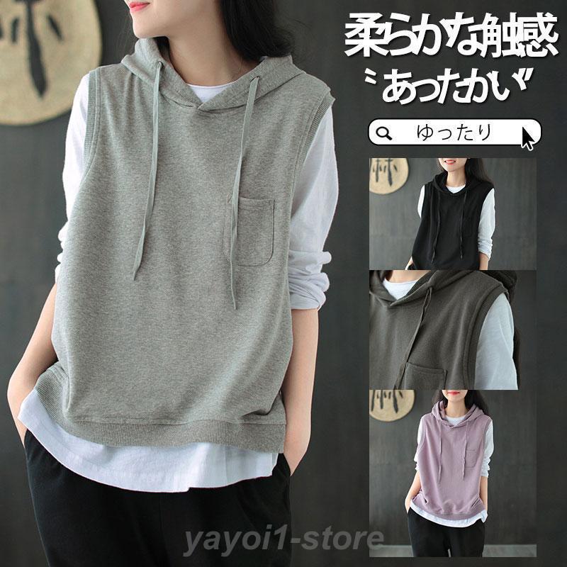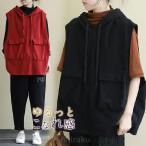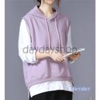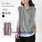 パーカー レディース ノースリーブ フード付き ベスト プルオーバー ポケット付き ゆったり 重ね着 レイヤード トップス お洒落 着痩せ