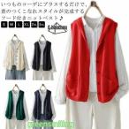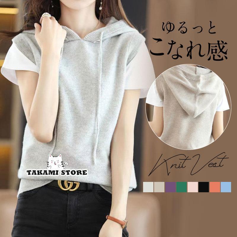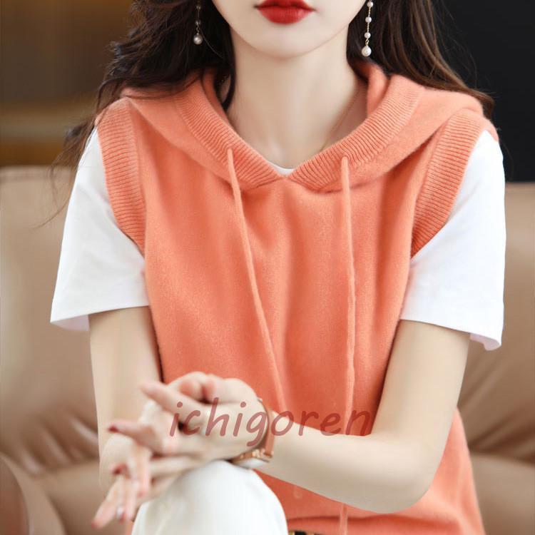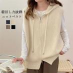 ニット ベスト レディース フード付き サマーベスト サマーニット ノースリーブ ジレ ニットパーカー 前開き パーカー ポケット付き カーディガン