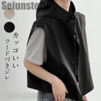 ベスト レディース ジレ 夏 秋 ノースリーブパーカー トップス ジレ ベスト オーバーシルエット パーカー ゆったり 袖なし フードづき 重ね着 ノースリーブ