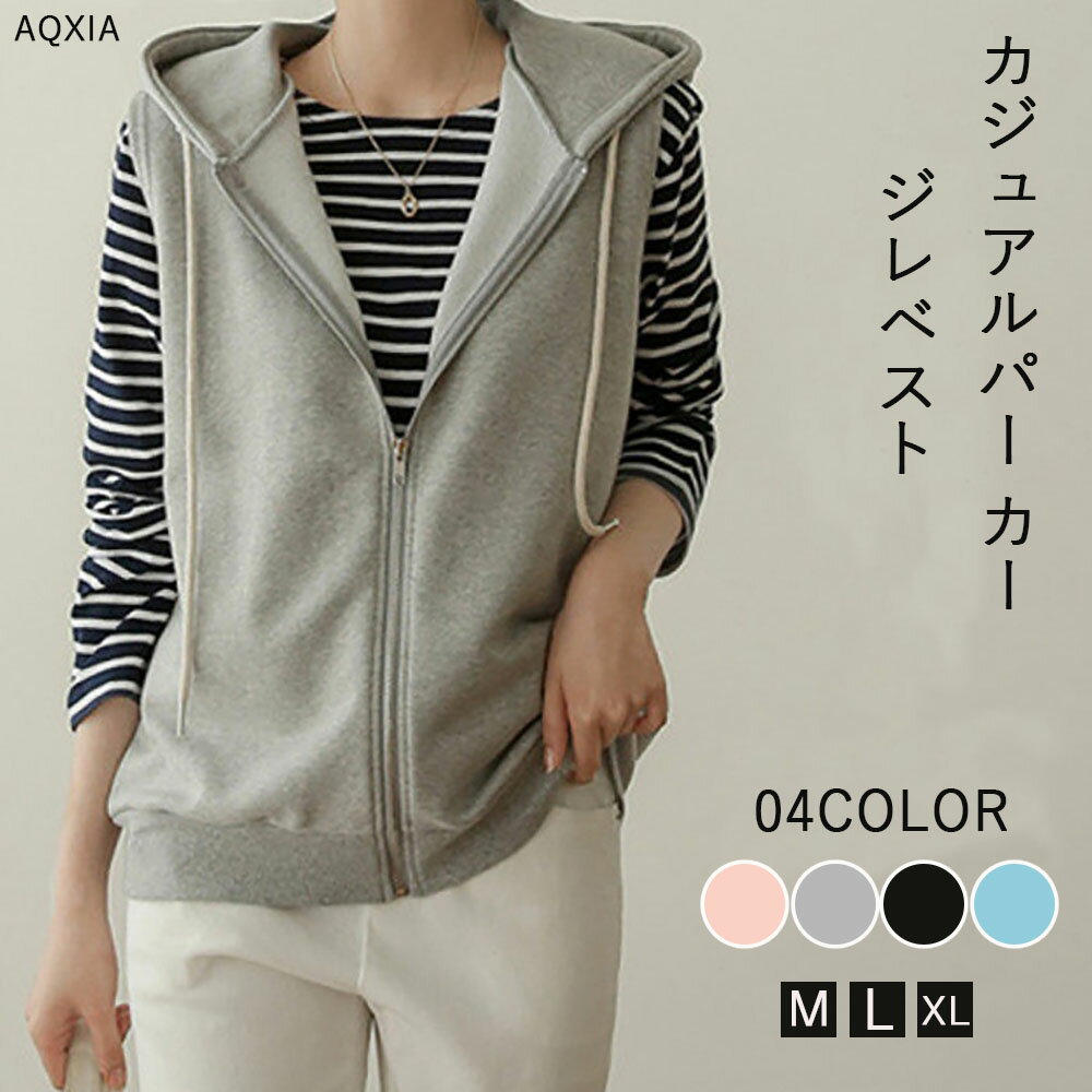 ベスト レディース パーカー 秋服 パーカーベスト 綿 ノースリーブ アウター ジップアップ 春 カジュアル