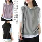 レディース プルオーバー ノースリーブ レイヤード ベスト 春 フード付き トップス パーカー 夏 秋 薄手 パーカー ゆったり 重ね着 お洒落 カジュアル