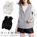 トップス レディース フード付き パーカー ベスト 春 前開き ベスト ジップアップ パーカーベスト ノースリーブ レイヤード 重ね着 スウェット カ