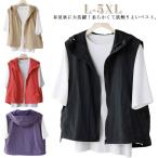 パーカー レディース フード付き ベスト ジレ ノースリーブ トップス 春 夏 アウター 大人 ジップアップ パーカー風 前開き 大きいサイズ シンプ