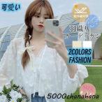 【先着50枚!13%OFFクーポン】可愛いキャミやタンクと Tシャツとも重ね着OK レースパーカー 五分袖パーカー 重ね着 総レースフード パーカー 五分袖