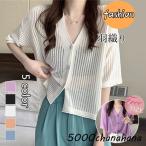 カーディガン UVカット ニット 薄手 レディース Vネック紫外線対策 日焼け予防 接触冷感 トップス 無地 通勤 5分袖 ゆったり 透かし 前開き