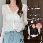 カーディガン UVカット 薄手 レディース 紫外線対策 日焼け予防 接触冷感 羽織り 無地 通勤 長袖 夏 ゆったり 透け感 レース 大きいサイズ