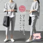 セットアップ レディース 2点セット ジャージ 上下セット ルームウェア 重ね着 薄手 5分袖 7分丈 着やせ スタイリッシュ 無地 カジュアル