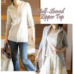 5分袖 コットン100 フーディ フードパーカー(返品交換ギフト包装不可) レディース 女性 9号 Mサイズ 骨格ナチュラル シンプル ロング丈