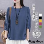 ブラウス Tシャツ レディース 夏 綿麻 リネン 長袖 7分袖 トップス 無地 薄手 ボリューム袖 体型カバー uvカット ゆったり 柔らかい