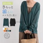 カーディガン UVカット サマーニット レディース 長袖 7分袖 紫外線対策 ニットパーカー アウター 七分袖 羽織 大きいサイズ フード付き 冷感 UV 冷房対策