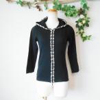 レストローズ LEST ROSE 春夏 向き 7分袖 薄手 ニット ジップアップ パーカー 黒 M