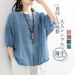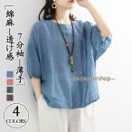 2点15%オフ!ブラウス Tシャツ レディース 夏 綿麻 透け感 7分袖 トップス 薄手 ボリューム袖 体型カバー uvカット ゆったり 無地 涼しい 母の日プレゼント