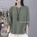 国内 ブラウス Tシャツ レディース 夏 半袖 トップス 7分袖 薄手体型カバー 涼しい ドルマンスリーブ uvカット 母の日プレゼント 敬老の日