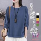 ブラウス Tシャツ レディース 夏 綿麻 リネン 長袖 7分袖 ス 無地 薄手 ボリューム袖 体型カバー uvカット ゆったり 柔らかい
