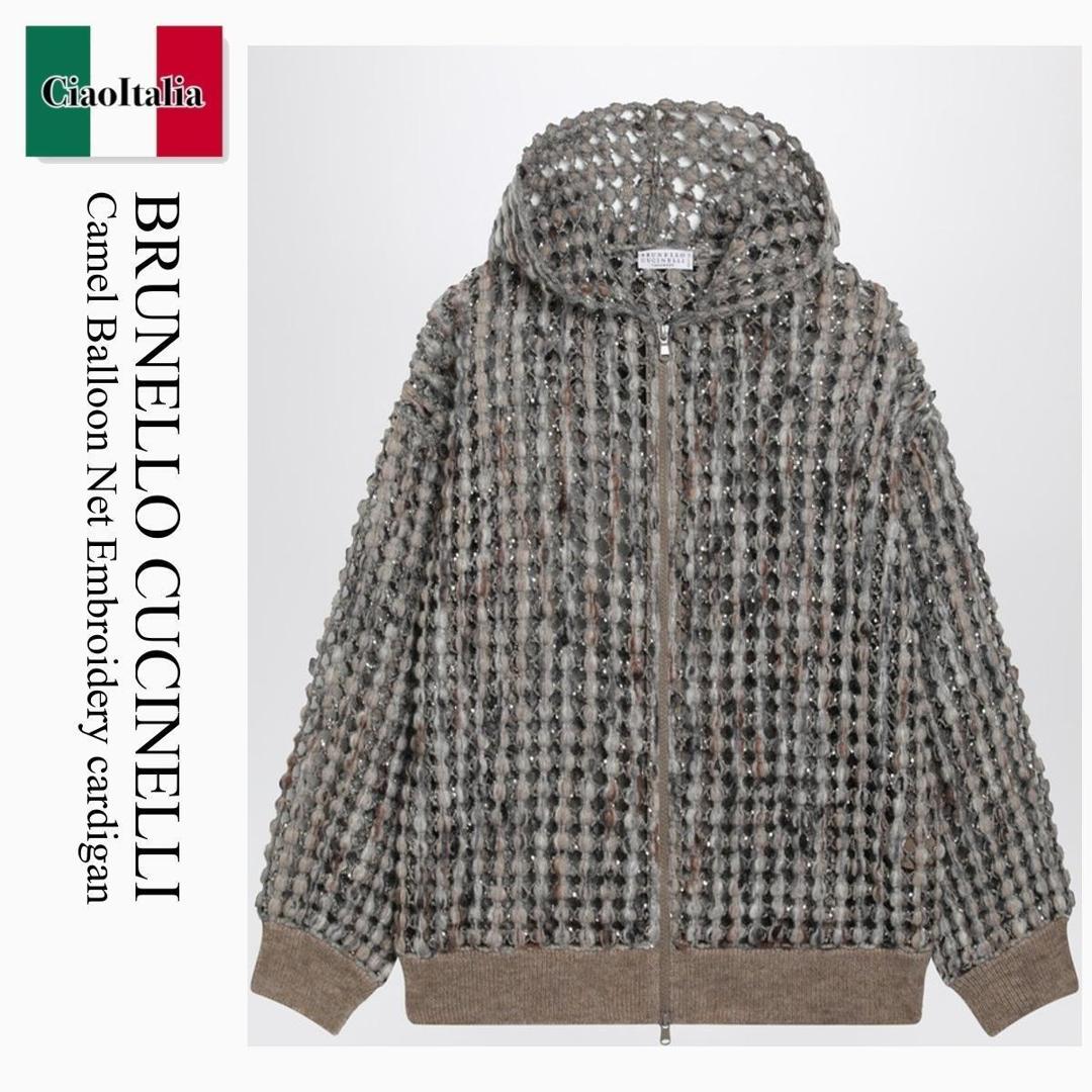【数量限定・在庫限り・早い者勝ち!】 ブルネロクチネリ / Brunello Cucinelli Camel Balloon Net Embroidery Cardigan / MGSR24306W / MGSR24306W COE63 / MGSR24306WCOE63 / パーカー・フーディ