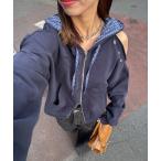 パーカー ショルダースリットハトメワッペンジップパーカー レディース