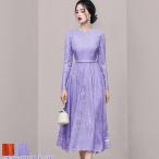 結婚式 ワンピース パーティードレス 花柄 プリーツ チュール ロング 総レース 透け感 ウエストゴム 大きいサイズ 小さいサイズ 7分袖 袖あり オケージョン 1.5次会 春 夏 秋 冬 パーティドレス 二次会 謝恩会 レース 成人式 同窓会 体型カバー 入学式 卒業式