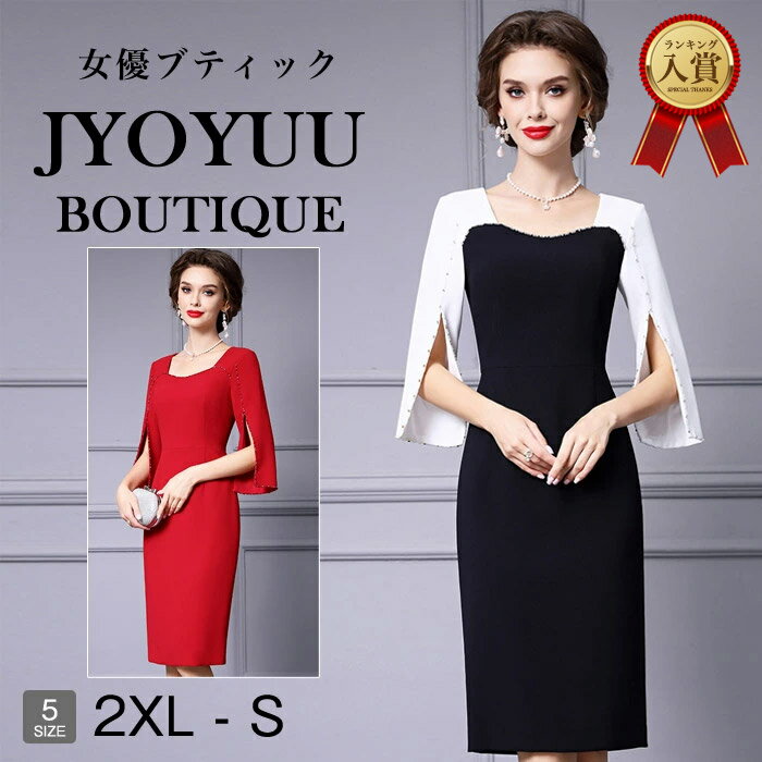 ドレス オケージョンドレス 結婚式 3way | ドレープリボンシフォン タイトワンピース ドレス | パーティードレス ワンピース フォーマル オケ