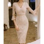 ドレス 七分袖レースワンピースドレス