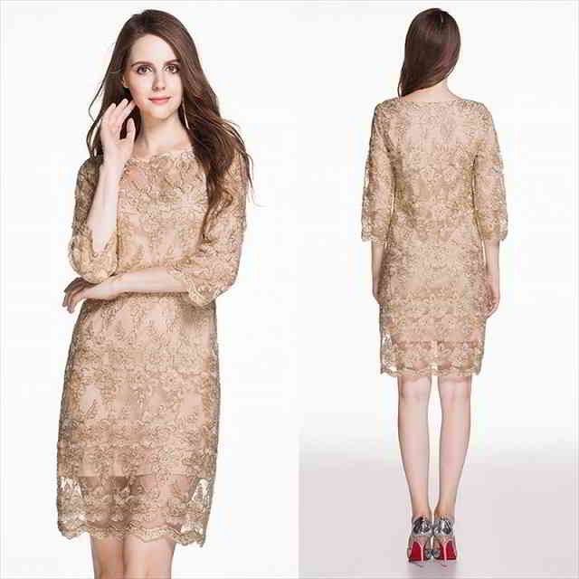 ドレス 総レースワンピースドレス結婚式ワンピースパーティードレス