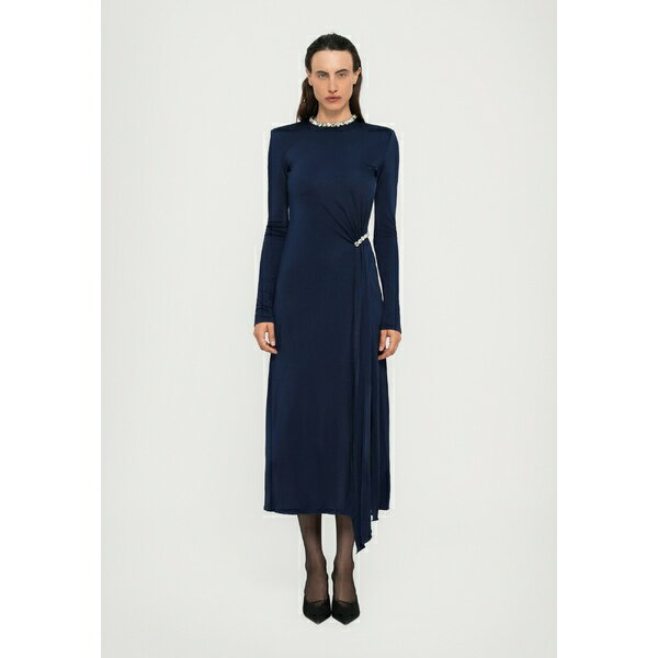 デヴィッド コーマ レディース ワンピース トップス CRYSTAL EMBROIDERY NECK & WAIST DETAIL MIDI DRESS - Cocktail dress / Party dress - navy/silver coloured