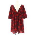 ヒステリックグラマー HYSTERIC GLAMOUR ダマスク柄Vネックバルーンスリーブチュニック 五分袖 F レッド /HK ■OS レディース