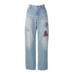 ヒステリックグラマー HYSTERIC GLAMOUR デニムパンツ ジーンズ ジップフライ ストレート ロゴ ステッカー プリント ダメージ加工 青
