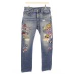 ヒステリックグラマー HYSTERIC GLAMOUR スタッズ プリント スリム デニムパンツ S|ブルー インディゴ【2400014640700】