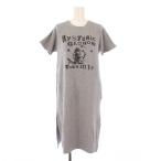 ヒステリックグラマー HYSTERIC GLAMOUR TURN IT UP pt ロングワンピース ひざ丈 半袖 クルーネック ストレッチ ロゴ F グレー