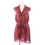 ヒステリックグラマー HYSTERIC GLAMOUR フレアワンピース ミニ丈 半袖 オープンカラー ストレッチ 総柄 ベルト シルク F ピンク