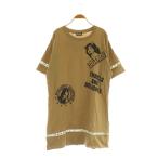 ヒステリックグラマー HYSTERIC GLAMOUR カットソーワンピース ミニ 五分袖 オーバーサイズ プリント F ベージュ /MY ■OS レディース