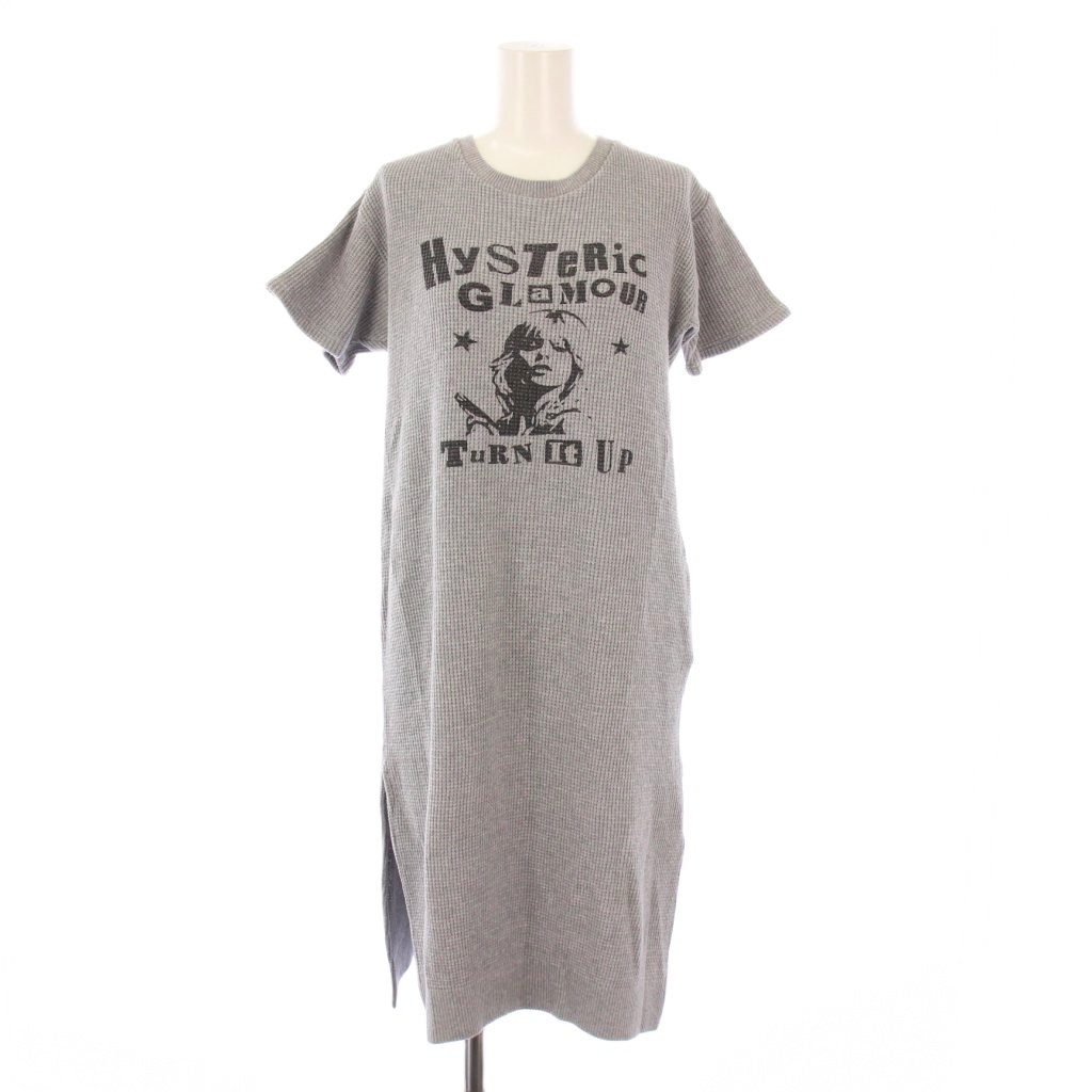 【中古】ヒステリックグラマー HYSTERIC GLAMOUR TURN IT UP pt ロングワンピース ひざ丈 半袖 クルーネック ストレッチ ロゴ F グレー 01191CO03 /BB レディース 【ベクトル 古着】 251015