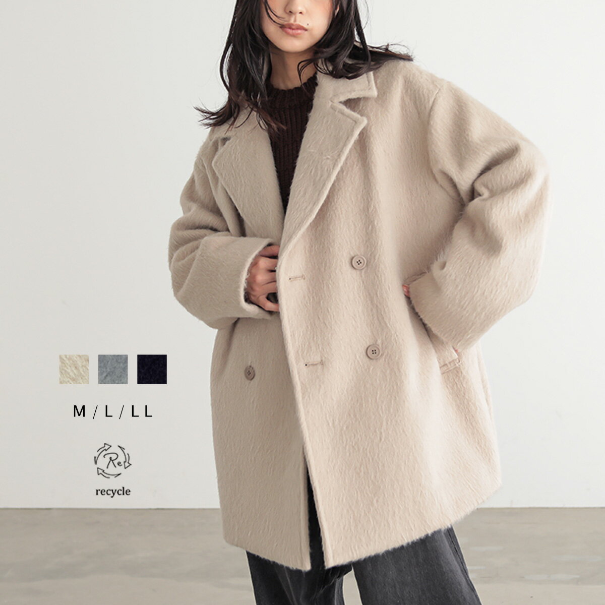 コート ピーコート コクーンシルエット ハーフコート シャギー ふわふわ ボタン ダブル レディース アウター 羽織 体型カバー あったか リサイクルポリエステル エコ 秋 冬 M L LL サイズ 洗濯可 for/c フォーシー 楽天room
