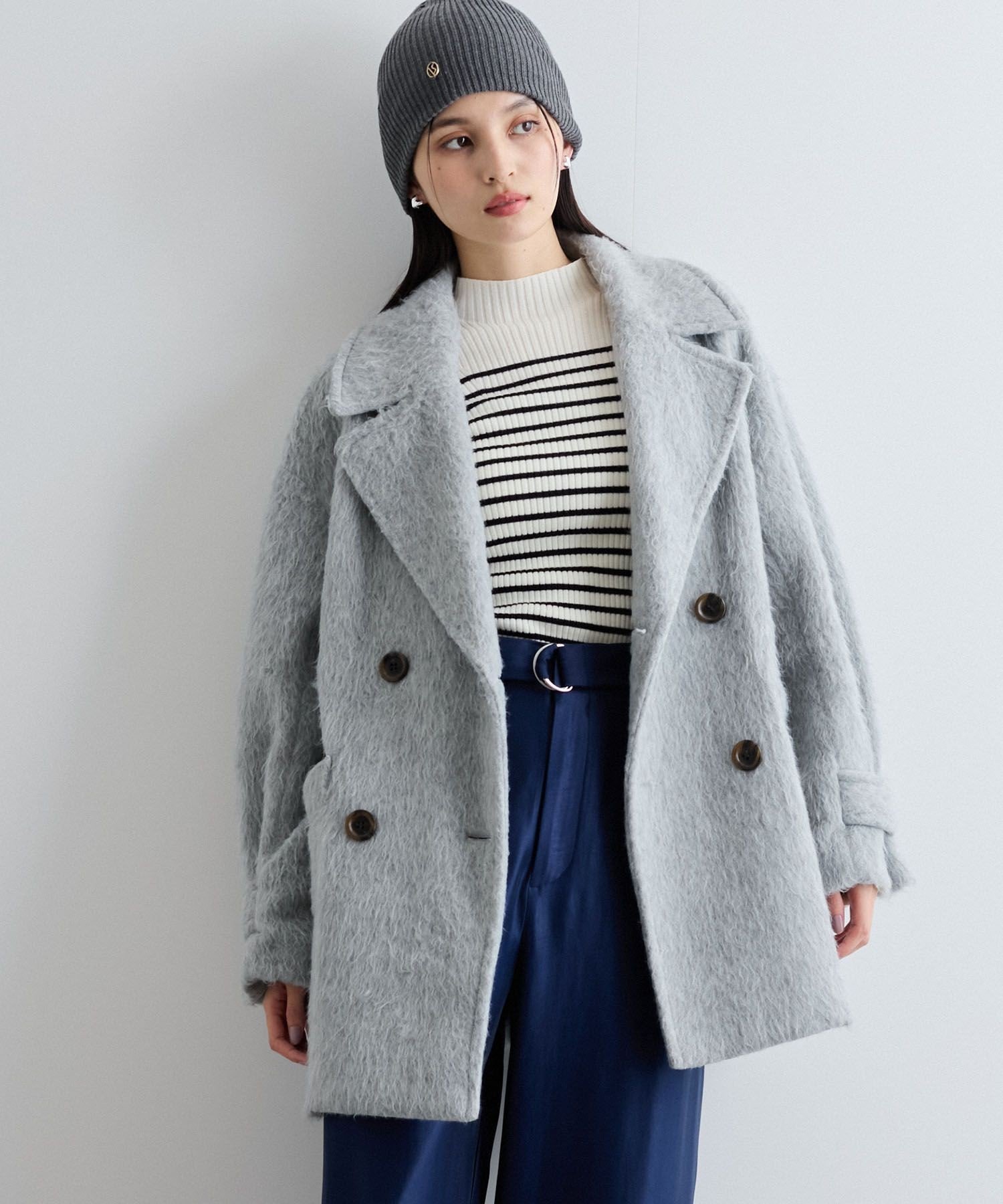 【SALE/40%OFF】INTERPLANET ニットビーバーピーコート インタープラネット ジャケット・アウター ピーコート グレー ブラウン ベージュ【送料無料】