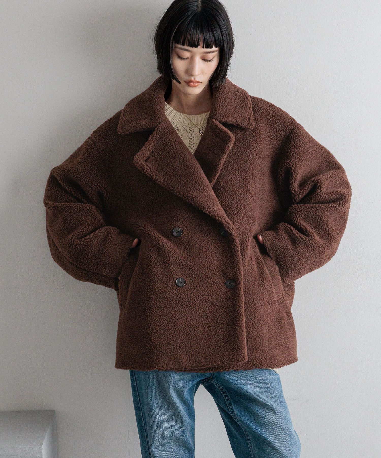 クーポン利用で40%OFF★ 【新色登場】オーバー Pコート アウター コート フェイクウール ピーコート オーバーサイズ 防寒 あったか 流行 可愛い ゆったり 大きめ きれいめ【R-O R-A】 トレンド おしゃれ お洒落 カジュアル コーデ かわいい レディース